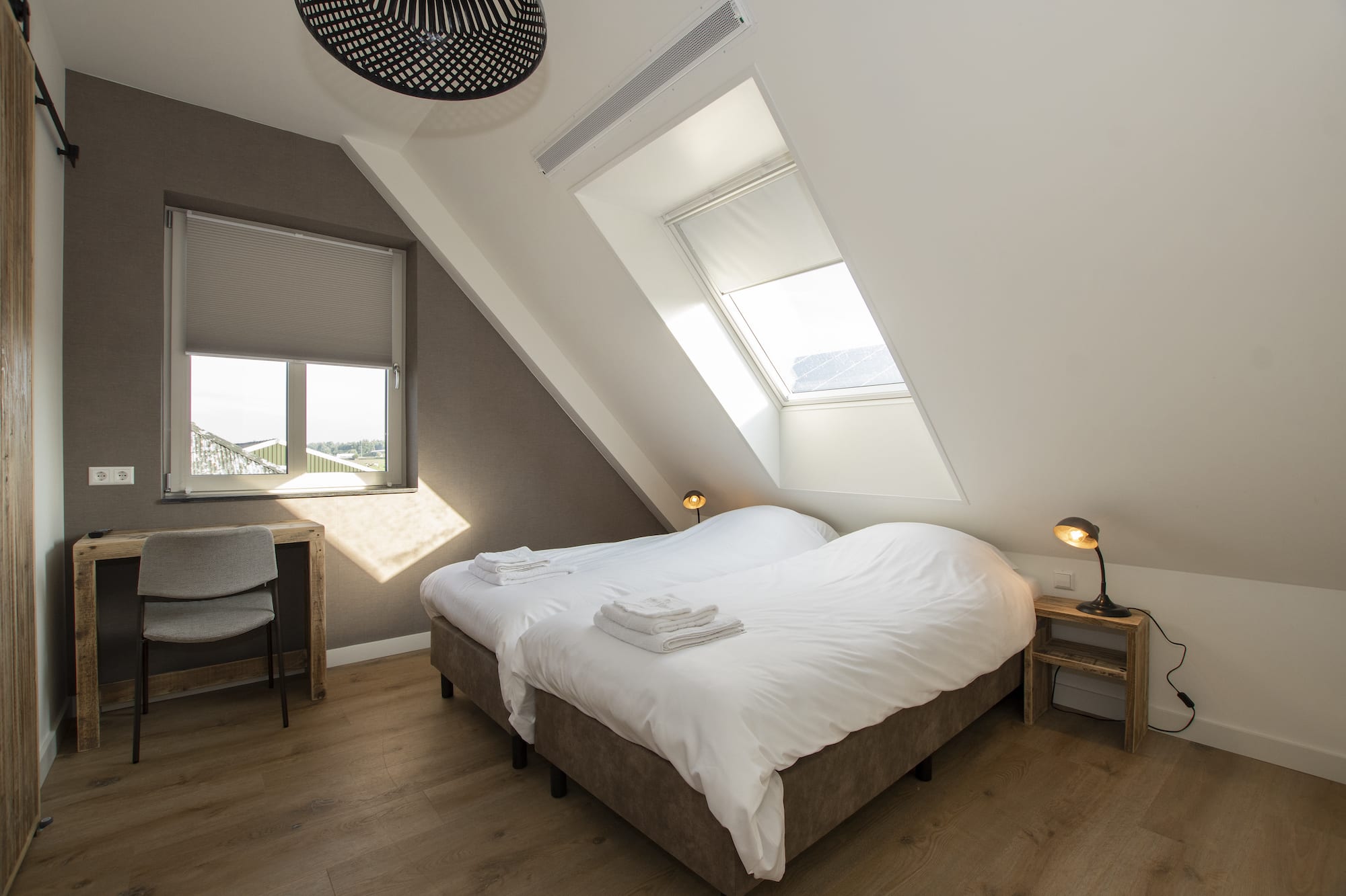 Welkom bij familie van Boheemen op boerderij Akkerlust. Op deze moderne boerderij kunt u heerlijk overnachten in een van de duurzame appartementen. U komt binnen in de eet- en woonkamer. De complete keuken, lange keukentafel en heerlijke stoelen zijn er om lekker te tafelen! Daarnaast is de zithoek met hoekbank, televisie en veel daglicht. Vanuit de woonkamer kunt u naar een slaapkamer met grote douche en toilet. Doordat de woonkamer en slaapkamer op de begane grond zijn, is dit appartement ook geschikt voor minder valide mensen. Vanuit de woonkamer kunt u ook met de trap naar twee slaapkamers, iedere slaapkamer heeft een televisie, bureau, douche en toilet. In het hele appartement en op het boerenerf is perfecte WiFi.